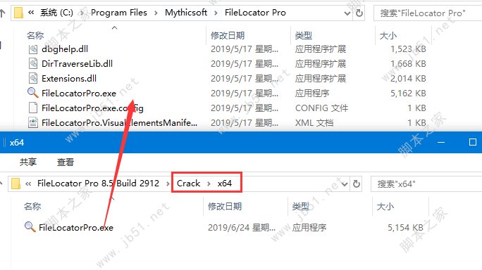 6、将【Crack】中的对应【FileLocatorPro.exe】破解工具,复制到【第3步】设置的安装位置中