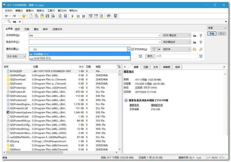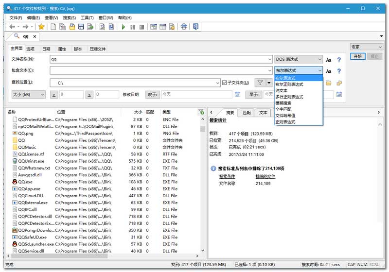 Filelocator Pro 除了支持最常见的 纯文本 输入关键词搜索外,还添加了布尔 / 正则 / DOS 规则,从而做到真正灵活定位搜索!当然,如果你对这些专业的表达式规则一窍不通无从下手也没有关系, Filelocator Pro 非常友好地为新手提供了相当详细的使用说明和简单易懂的「表达式向导」。而这一切,在中文的界面以及帮助文档下,学习时间大大缩短,相信用不了多久你就能完全掌握、灵活使用。使用时间日期作为额外添加条件可以进一步缩小结果范围,节约时间。